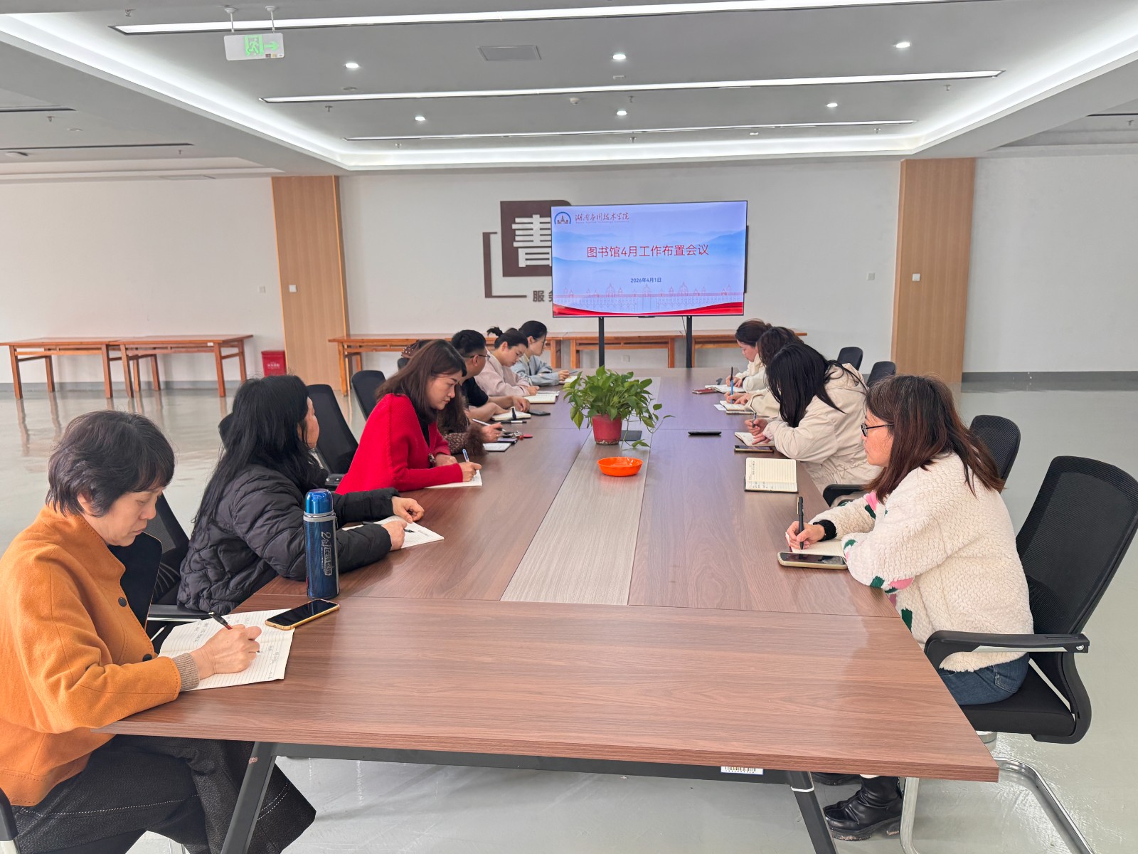 4月1日下午,图书馆4月工作布置会议顺利召开。本次会议由馆长吴泽琴主持,副馆长陈蓉、郑兵,流通部科长田琪,采编部科长李英及全馆工作人员参会。会议全面回顾3月各项工作进…