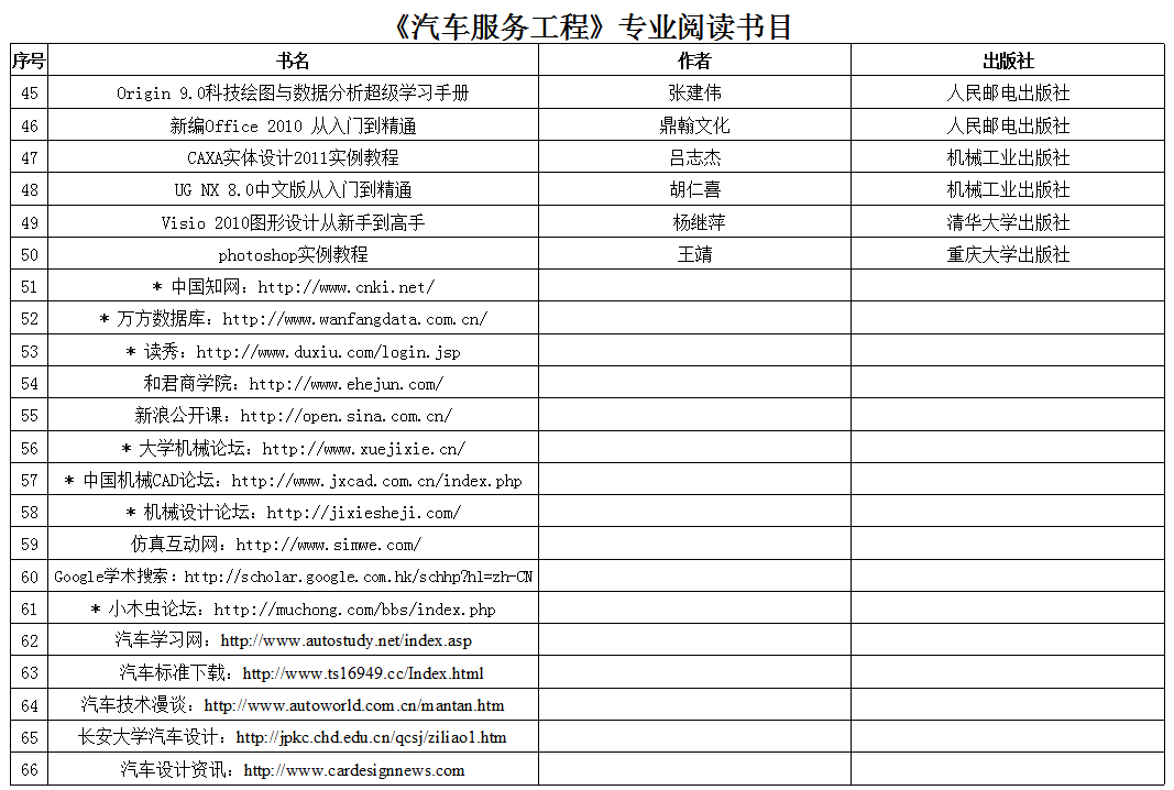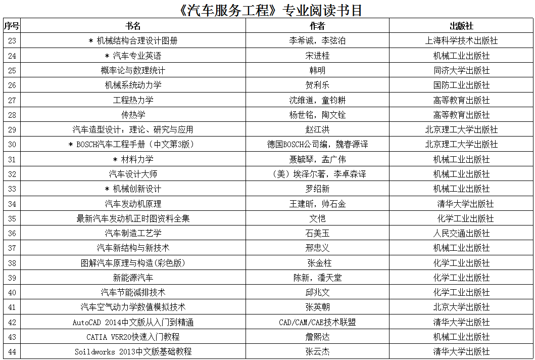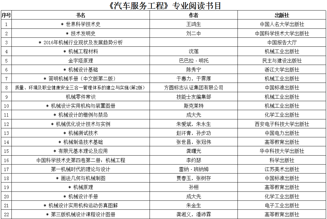本科学生阅读书目—机电工程学院 (汽车服务工程)