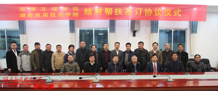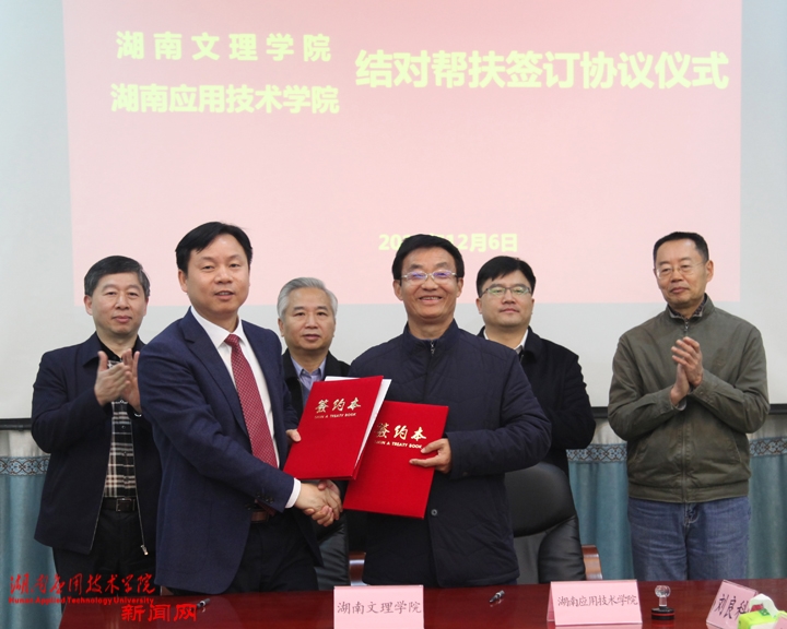 党的十九大胜利闭幕之际,12月7日下午,湖南文理学院与我校一对一党建结对帮扶签约仪式在我校图书馆举行。湖南文理学院党委书记、博士生导师谷正气教授,党委副书记、校长、博士生导师龙献忠教授,党委副书记龚卫明教授,我校党委书记、硕士生导师李钢教授,党委副书记、董事长李少夫,党委副书记、校长陆晨教授,党委副书记、纪委书记陈文斌教授,党委委员、副校长夏维福教授,党委委员、副校长王文龙教授,党委委员、副校长李新华教授,党委委员、工会主席谢自强,党委委员、组织部长高作梅,校长助理、校办主任、人事处长李红波,校长助理、招生就业处处长、创新创业学院院长汪金良以及两校党政办、组织部、教务处、人事处、科技处等职能处室的主要负责人出席了签约仪式。双方就帮扶工作目标任务、具体内容、方法步骤等进行了深入研讨,达成了普遍共识,并签订了结对帮扶协议书。